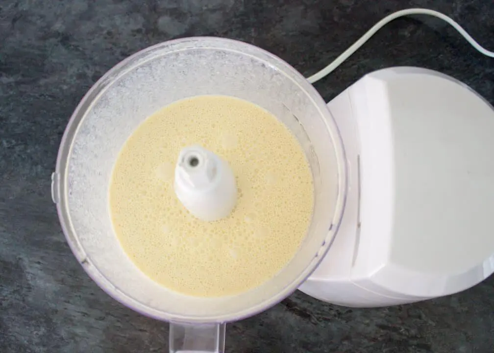 To make the batter, add All-Purpose Flour (1 cup), Farmhouse Eggs® Large Brown Eggs (2), Non-Fat Milk (3/4 cup), Water (1/2 cup), Salt (to taste), and Unsalted Butter (2 Tbsp) to a food processor and pulse until everything is blended to the consistency of single cream. If you don’t have a processor, just add everything into a large bowl and whisk vigorously until the same result is achieved.