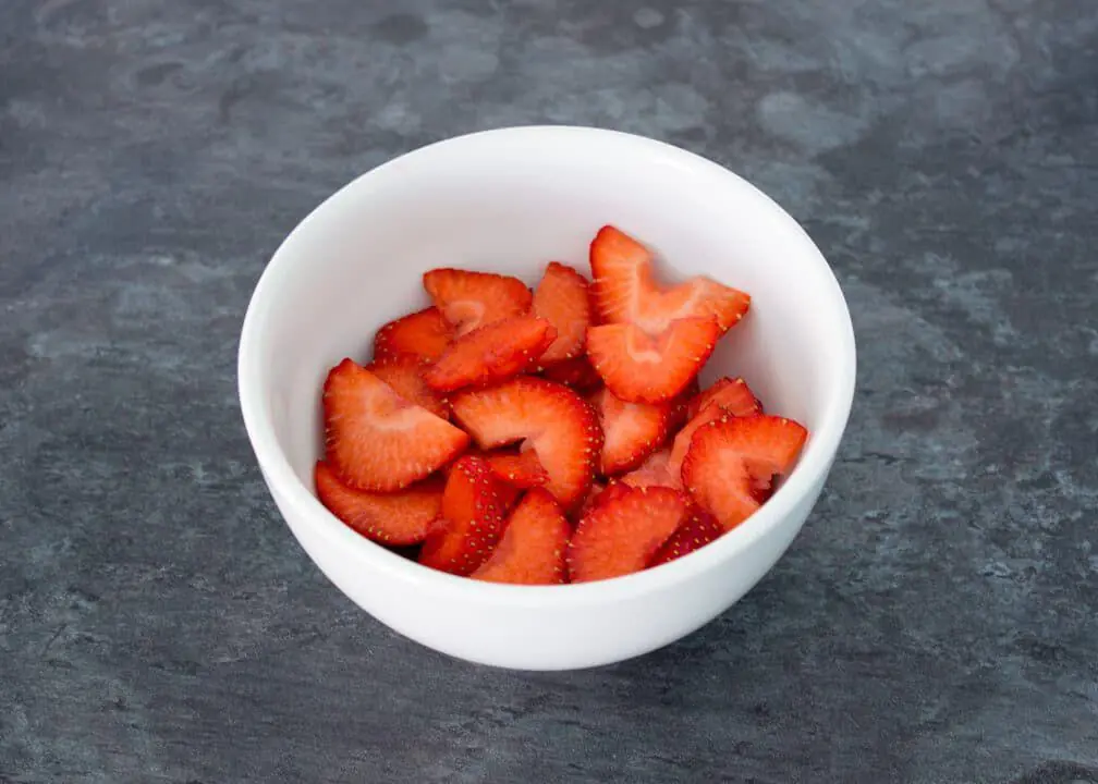 Once your batter is chilled, get the fillings ready. Hull and slice the Fresh Strawberries (to taste).