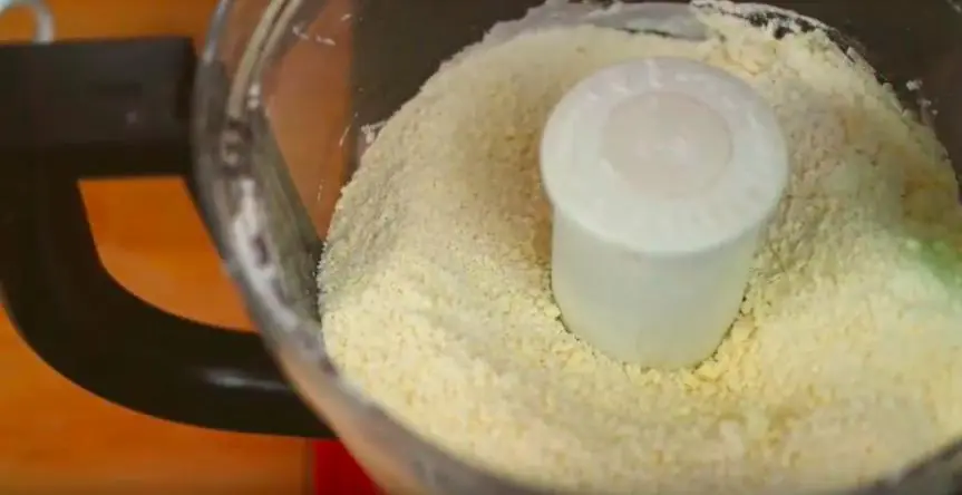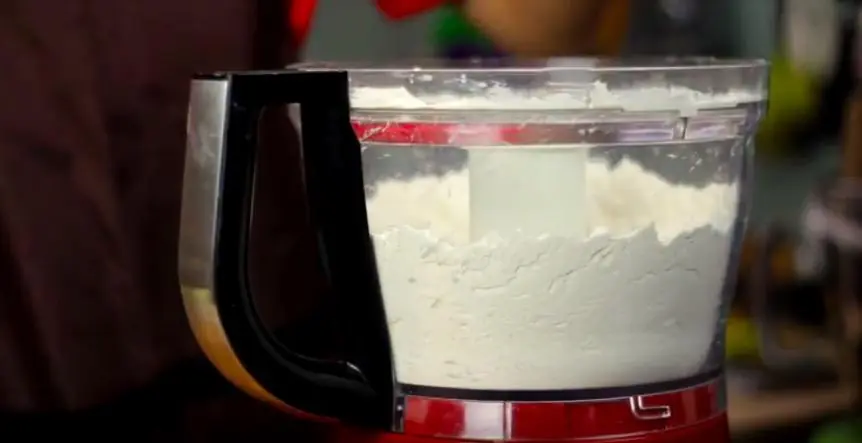 In a food processor, blitz All-Purpose Flour (2 1/4 cups), Corn Starch (4 Tbsp), Baking Powder (1/4 tsp), Caster Sugar (2 Tbsp), Salt (1/4 tsp) and Salted Butter (1 cup) to breadcrumb consistency.