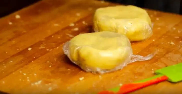 Press the crumbs together to form into one dough. Divide the dough into two and form each into a round disk.