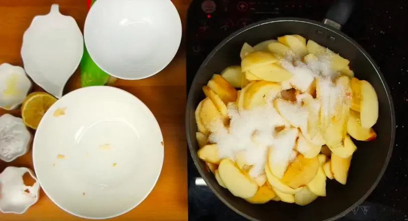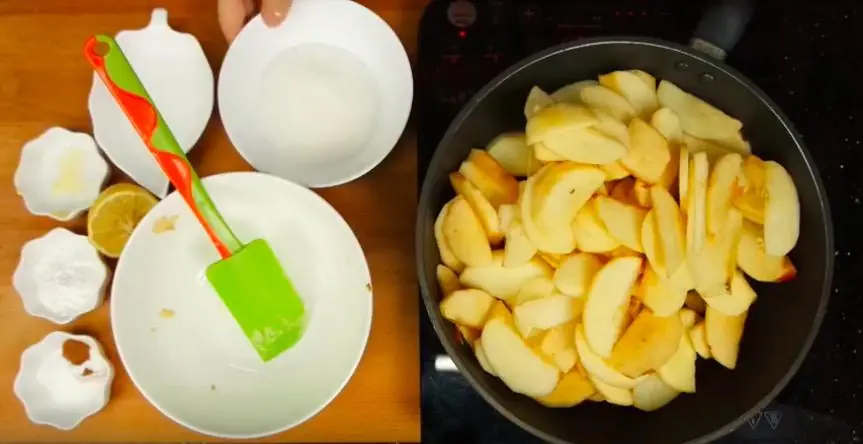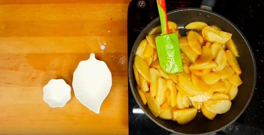 Meanwhile, melt Salted Butter (2 Tbsp) a medium heat pan and throw in Apples (6 1/3 cups).