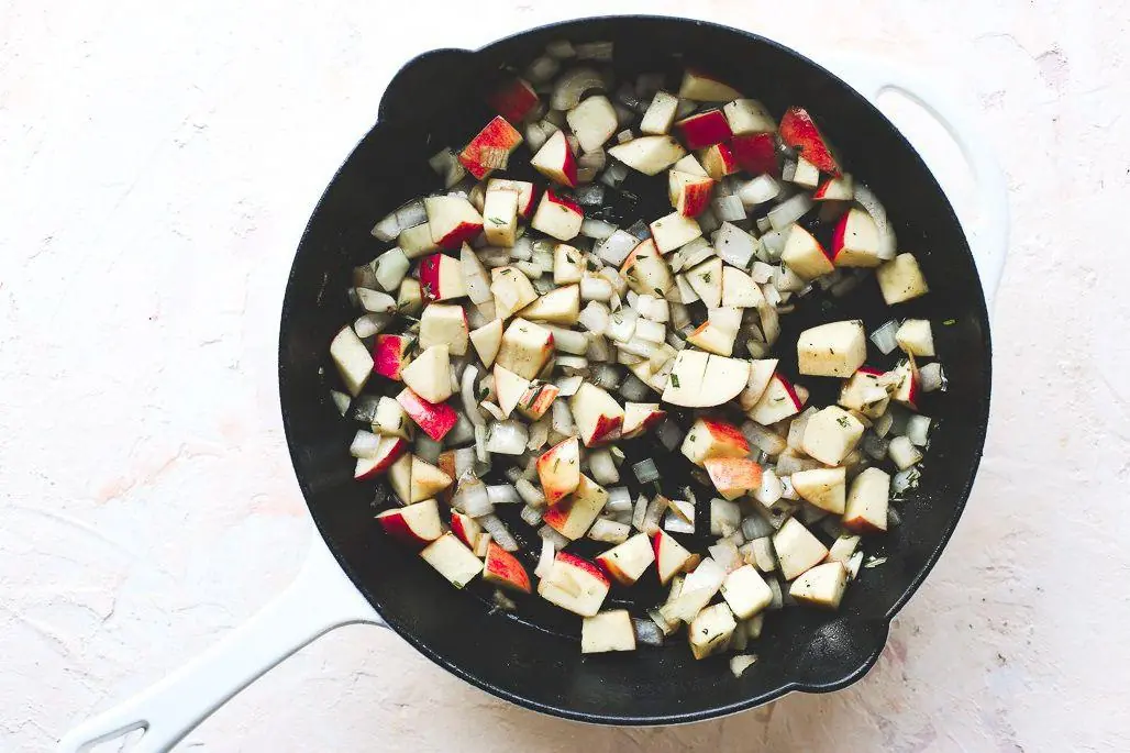 Chop the Sweet Onion (1) and Gala Apples (2).