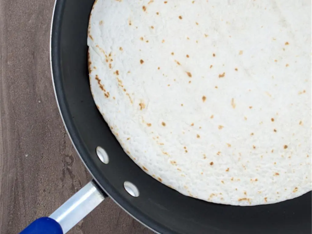 Heat Large Flour Tortillas (2) in a skillet to make the wrap easier to fold. This usually takes about a minute on each side.
