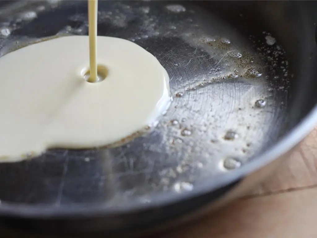 Rotate the pan to spread the batter into an even circle around the pan.