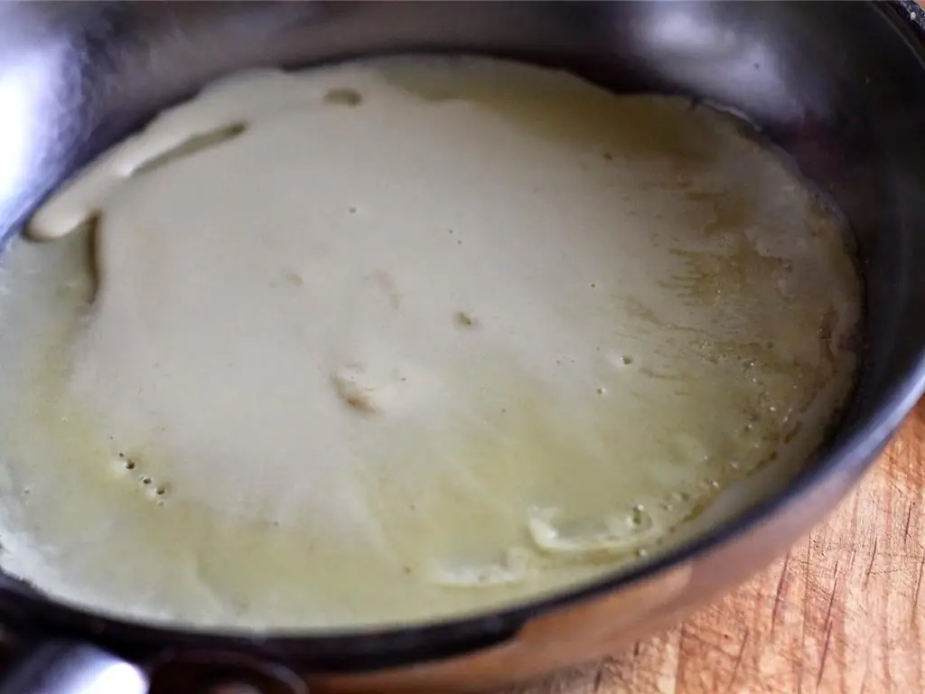 Cook for about 1 minute, or until edges come loose and begin to lift. Flip crepe and cook 20- 30 seconds on the other side.