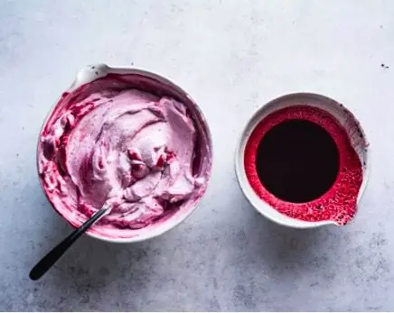 Strain the blackberry mixture into a bowl. You will need 1 cup of blackberry puree. If you have more than 1 cup, you can return the puree to the pot and bring it to a simmer. Simmer for 10-15 minutes to reduce it slightly to concentrate the flavors. Leave the puree to cool while you prepare the cream.