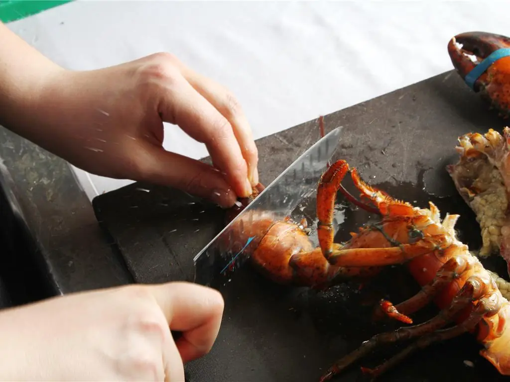 Then cut the rest of the lobster into pieces.