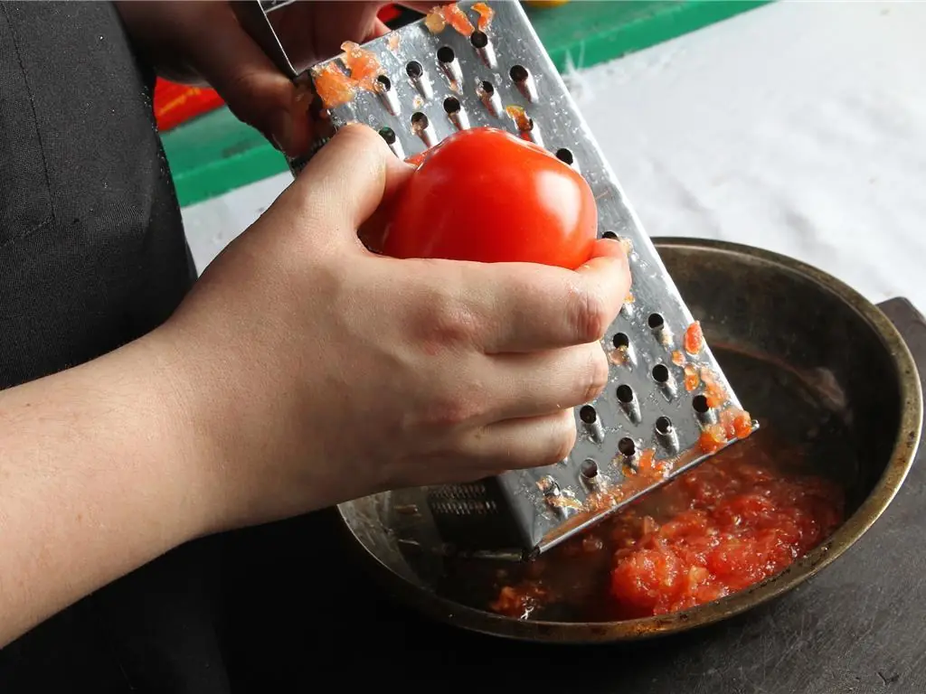 Grate the Tomatoes (1 2/3 cups) into a bowl.
