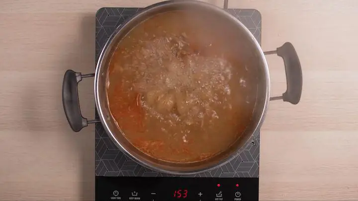 Add Water (5 cups), Canned Tuna (1 3/4 cups), Asam Gelugur (2 pieces), juice from Lemon (1), and Chicken Bouillon Powder (2 Tbsp). Mix well. Add Sambal (4 Tbsp). Mix well and bring to a boil.