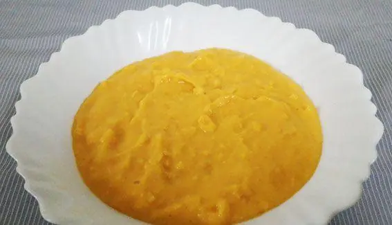 Steam the Carrot (1 cup) and Sweet Corn (3/4 cup) for ten minutes. Once cooled well, add a bit of milk and grinf to a fine paste.