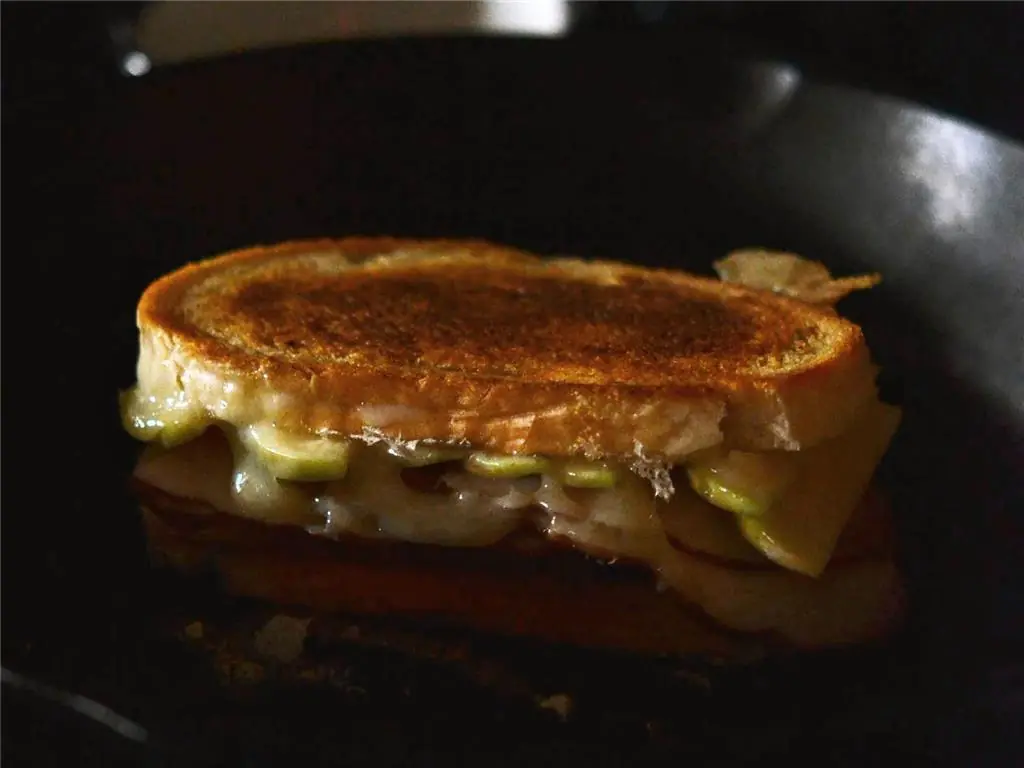 Place the sandwich on a panini press and cook until bread is golden brown and cheese is melty.If you do not have a panini press, place non-stick skillet over medium heat. Transfer sandwich to a skillet and cook until bread becomes golden brown and the cheese begins to melt.
