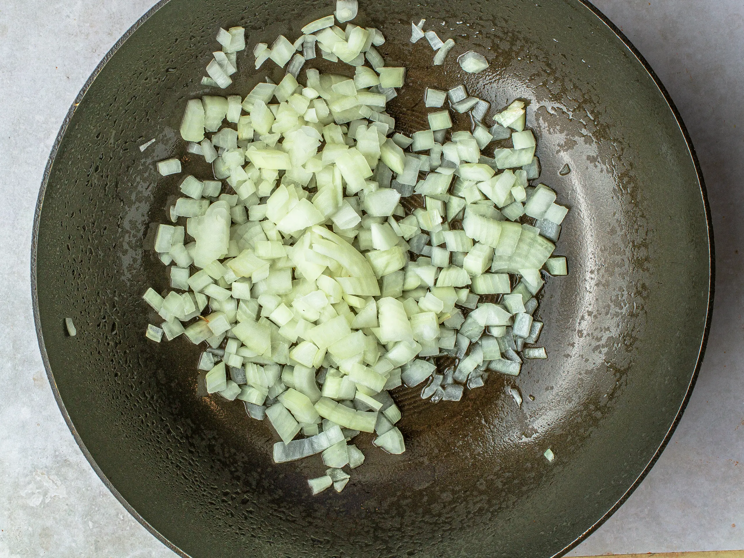 Over high heat, add Nonstick Cooking Spray (as needed) to a wok or large nonstick skillet. Add Onion (1) and cook until fragrant, about 1 minute.