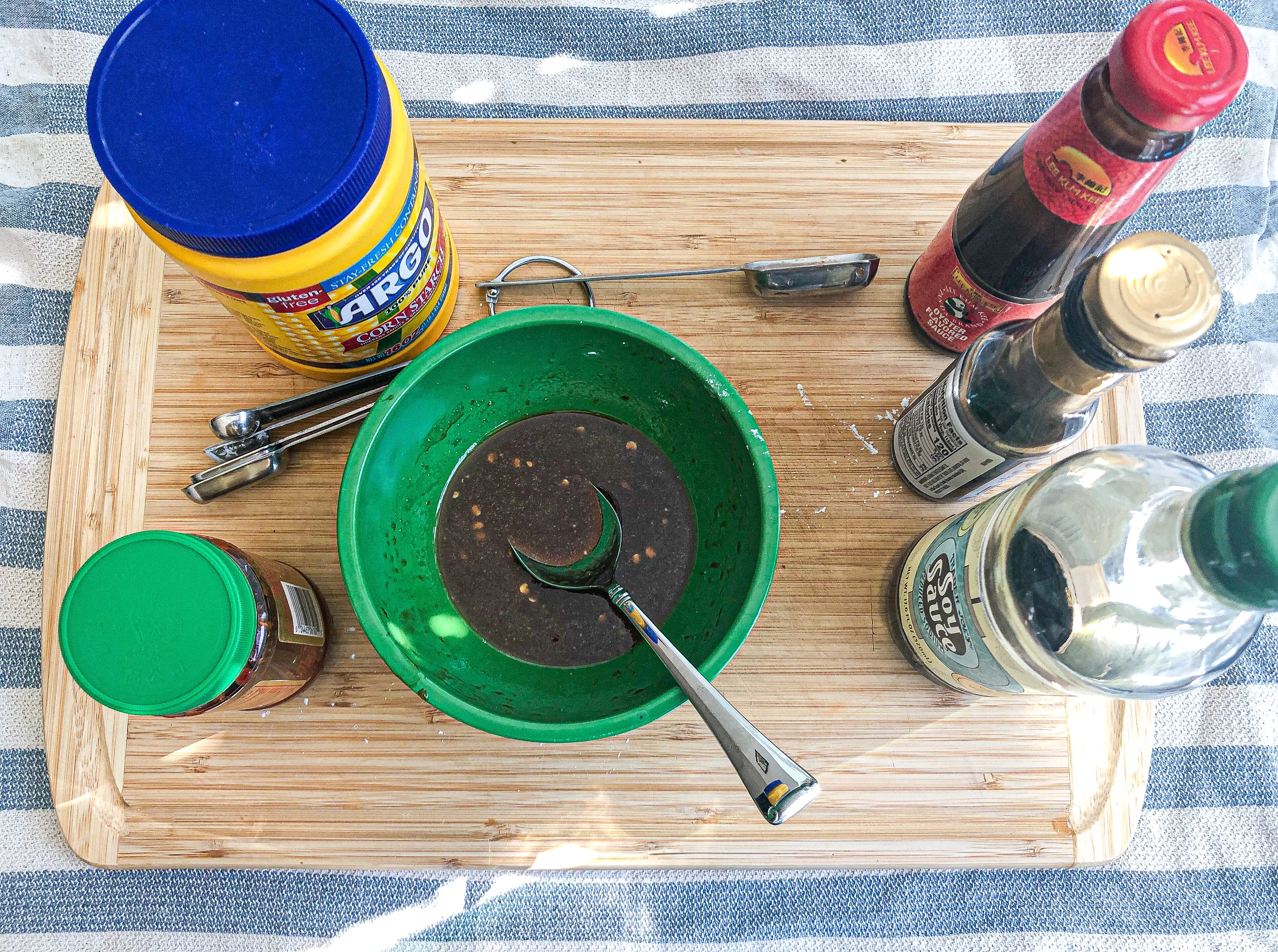 Meanwhile, mix the Soy Sauce (2 Tbsp), Water (1 Tbsp), Granulated Sugar (2 tsp), Corn Starch (1 tsp), Oyster Sauce (1 Tbsp), and Sambal (1 tsp). Set aside.