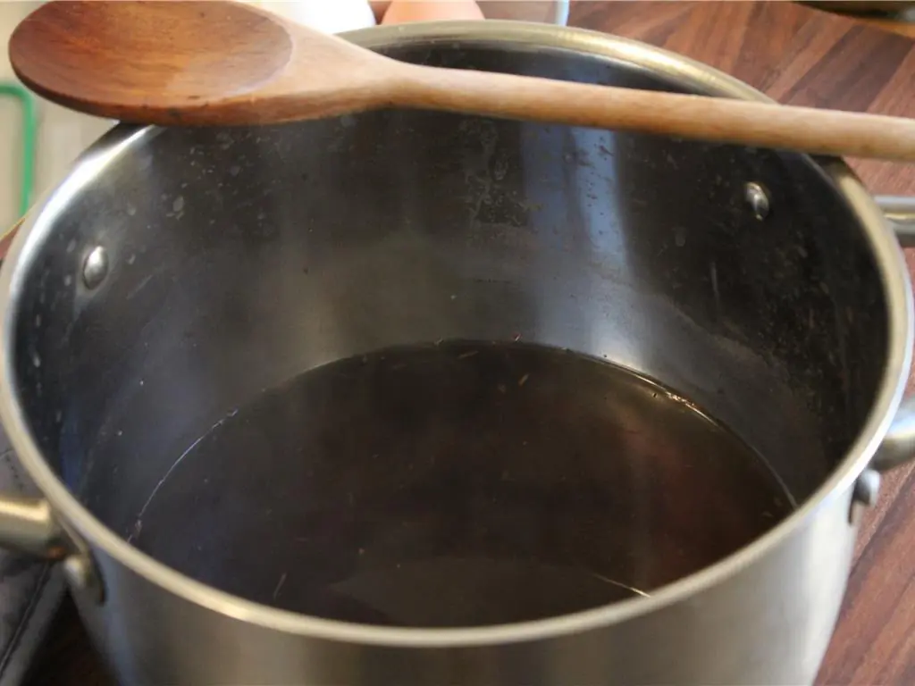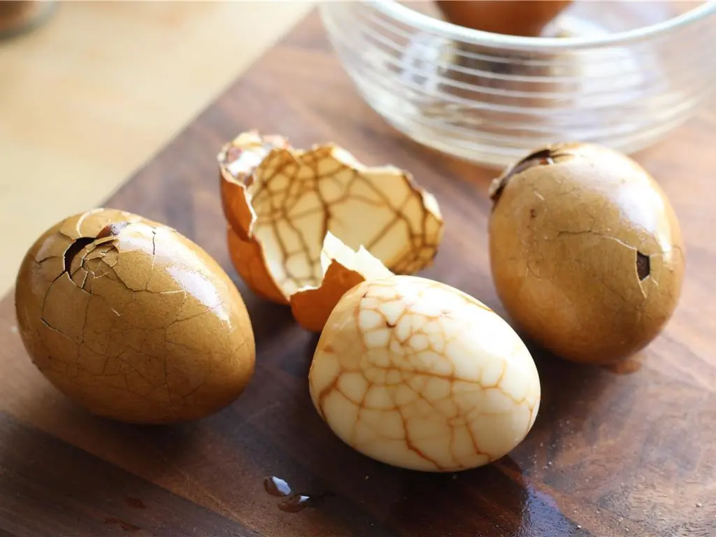 Place all cracked eggs in the tea and soy sauce mixture and simmer for a minimum of 2 hours on the stove. May also place in a crockpot and allow to simmer on low.
