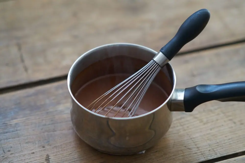 Remove from heat, then add the Bittersweet Chocolate (1 cup) and whisk until melted and fully incorporated.