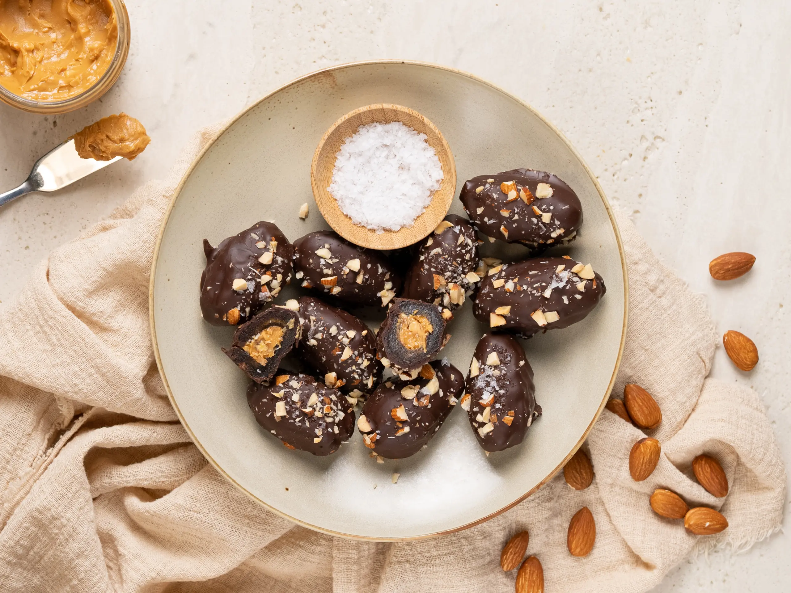 These chocolate-covered dates are a tasty and super easy-to-make snack, perfect as a gift for your friends and family. These incredibly addictive snacks are vegan, gluten-free, and naturally sweetened with an added crunch of texture from the peanut butter and almond. It's like a mini energy bar but healthier and tastier!