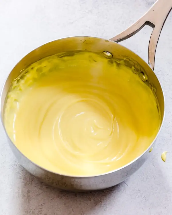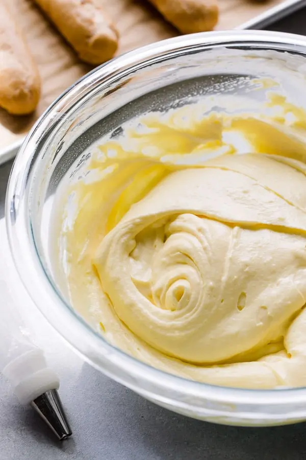 Transfer the dough into a mixing bowl with a paddle attachment and mix it for a few minutes on low speed until the mixture is at room temperature, about 2 minutes. No mixer? No problem. You can mix it with a wooden spoon!