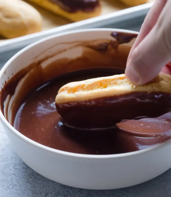 The chocolate glaze will set in about an hour at room temperature. If not serving right away, refrigerate filled eclairs.