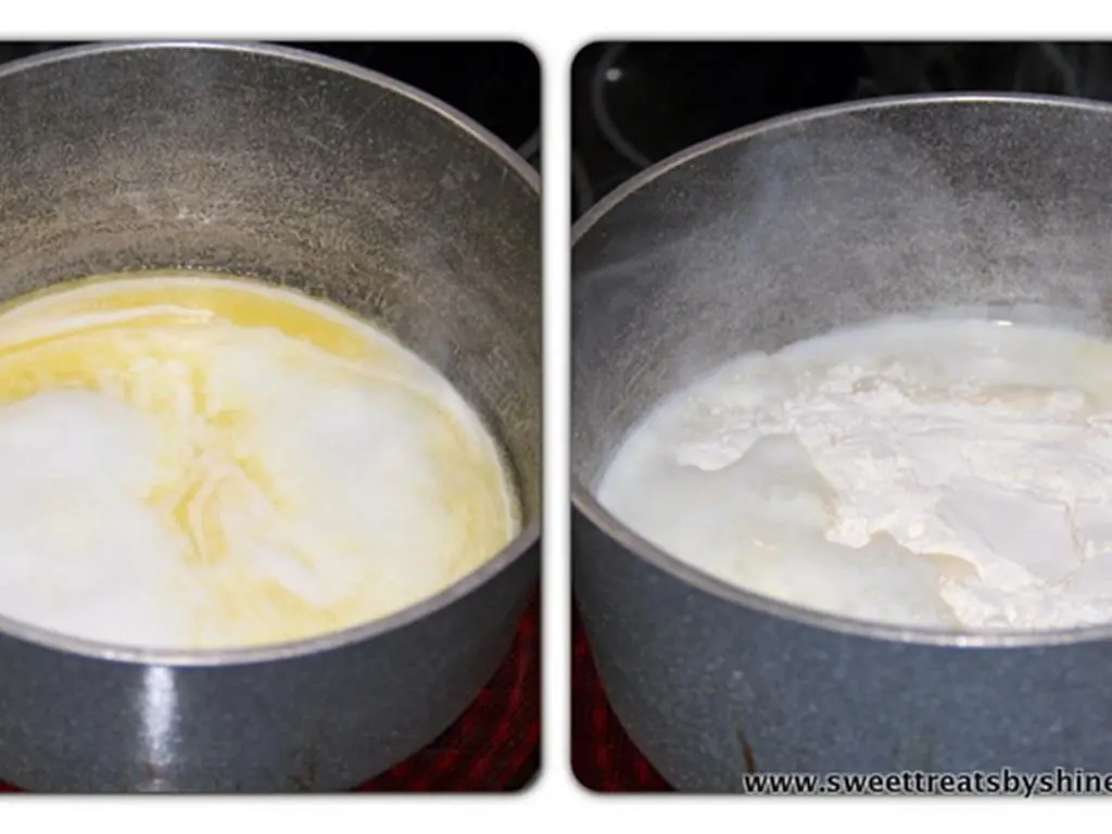 When the mixture is boiling, remove the saucepan from heat and add All-Purpose Flour (1 cup) all at once. Quickly mix the mixture until all the flour is absorbed.