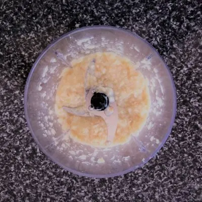 Add the Yellow Onion (1), Garlic Paste (1 tsp), and Ginger Paste (1 tsp) to a blender and pulse until it is pureed. Keep half of it aside in a small container for the gravy.