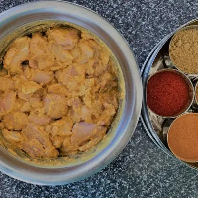 Preheat your oven to 350 degrees F (180 degrees C) when you are ready to prepare the butter chicken in its entirety.