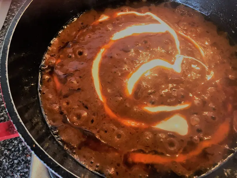 Add the Thickened Cream (1/3 cup) and Dried Fenugreek Leaves (1/2 tsp) stirring thoroughly. Taste the gravy and season accordingly, adding more salt and pepper if necessary. If you find the gravy to be too spiced, add a bit more cream.