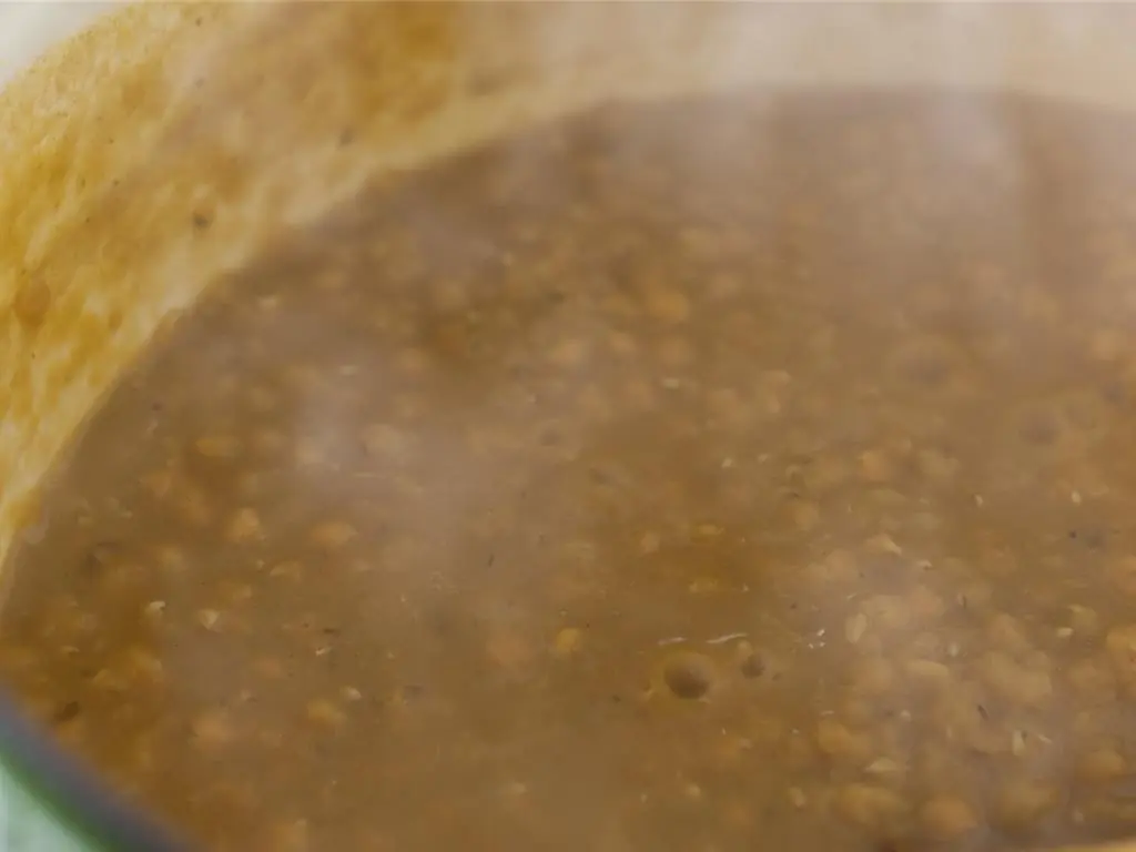 In a large soup pot, combine the Red Lentils (1 1/2 cups) and Vegetable Broth (5 cups), and bring to a boil over low heat, stirring occasionally. Once boiling, reduce to a simmer and allow to cook for about 20 minutes, or until tender.