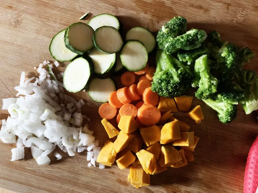 Add the Carrot (1), Broccoli (1/2 head), and Zucchini (1) and cook for 2 to 3 more minutes.