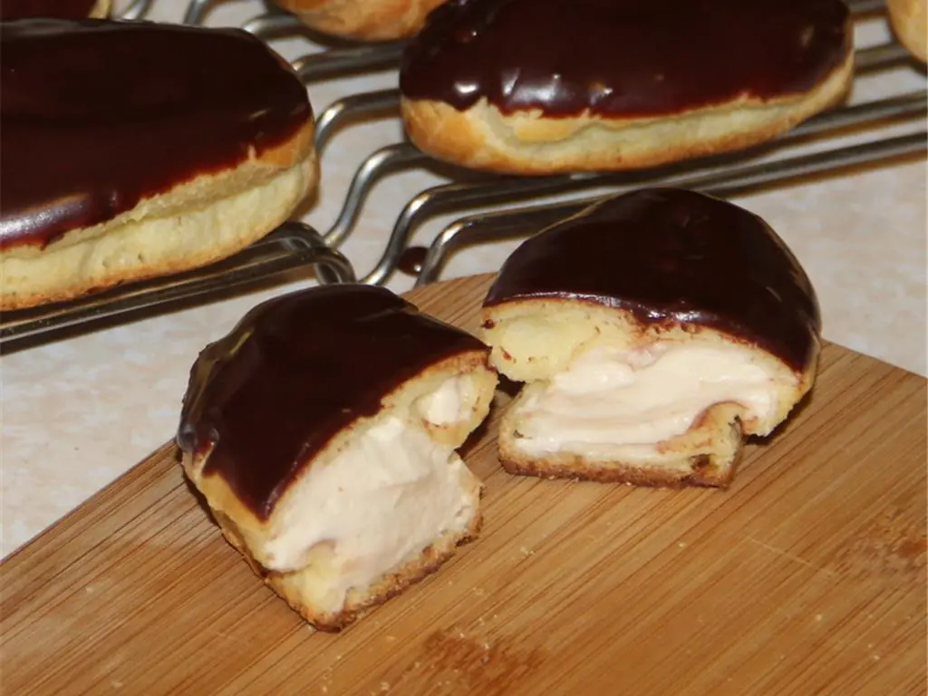 Whip Heavy Cream (1/2 cup) until it forms stiff peaks. Don’t overbeat it. Add whipped cream to the pastry cream and mix until well combined.