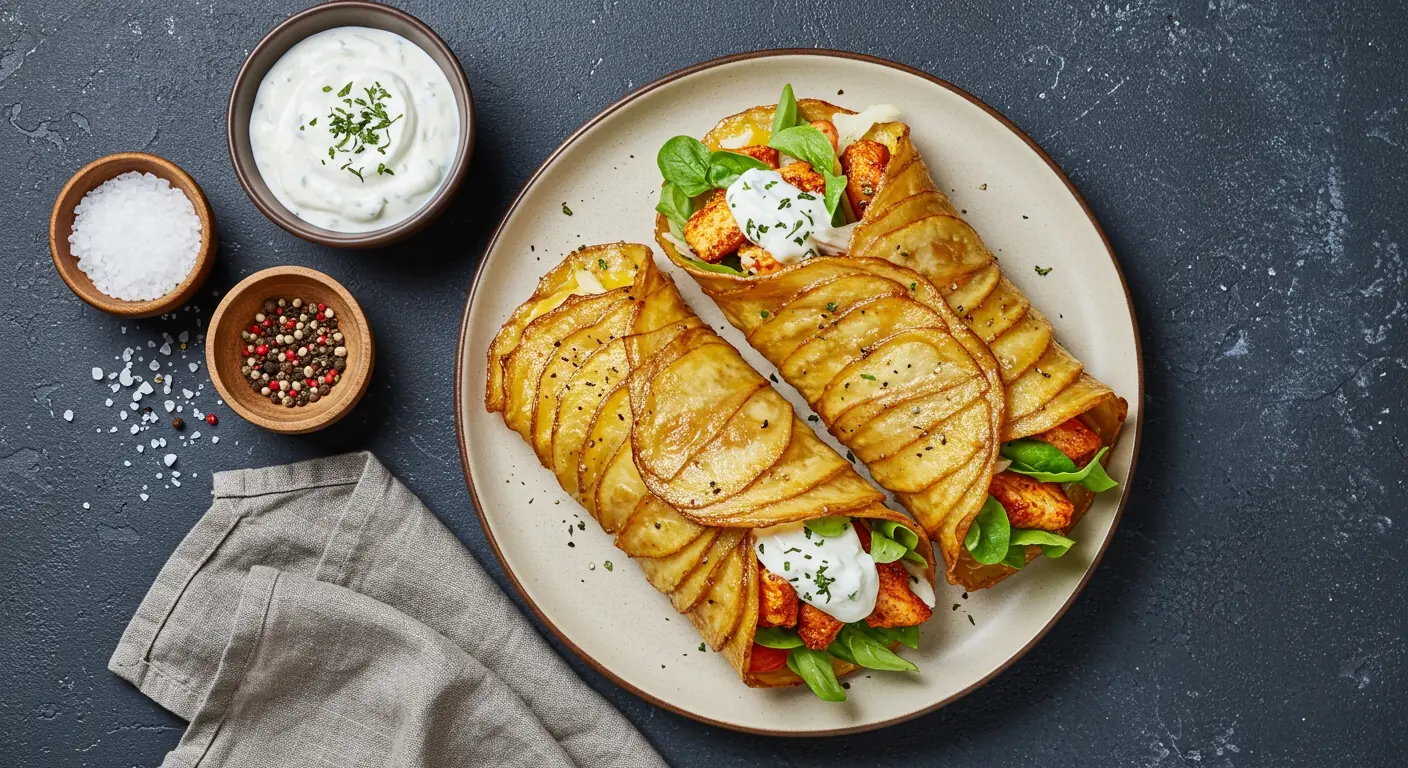 Crispy Potato Crust Wraps with Garlic Yogurt and Spiced Chicken