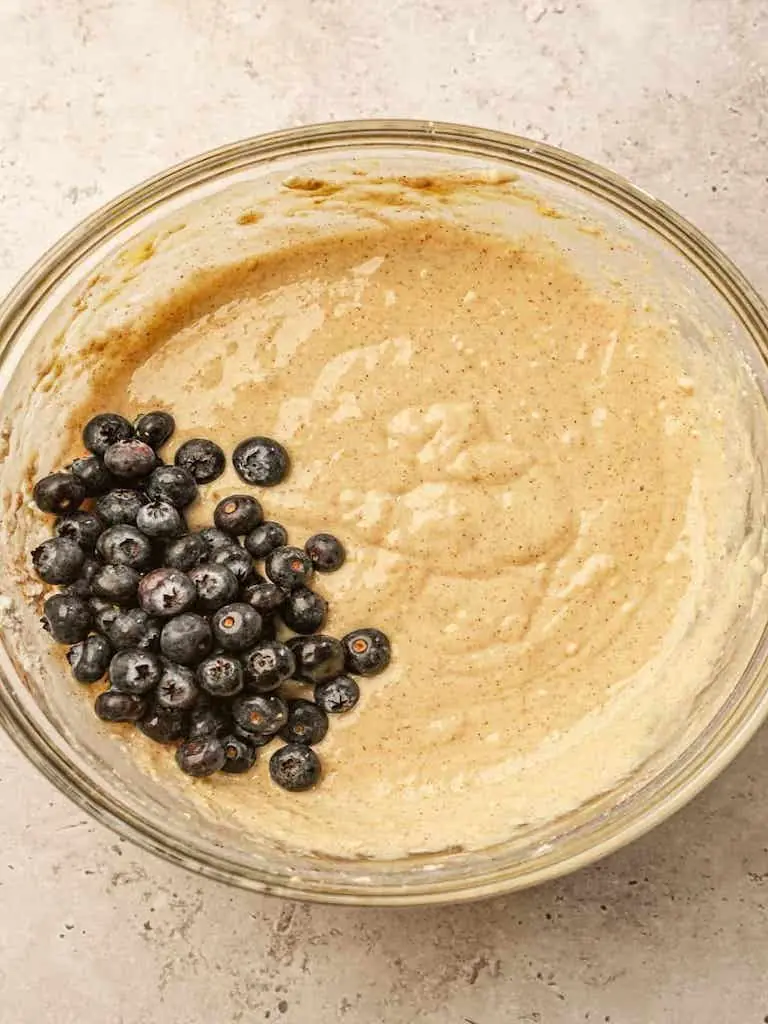 Fold in the Fresh Blueberry (1/2 cup). Preheat the waffle maker and once it is ready, spray with Nonstick Cooking Spray (as needed).