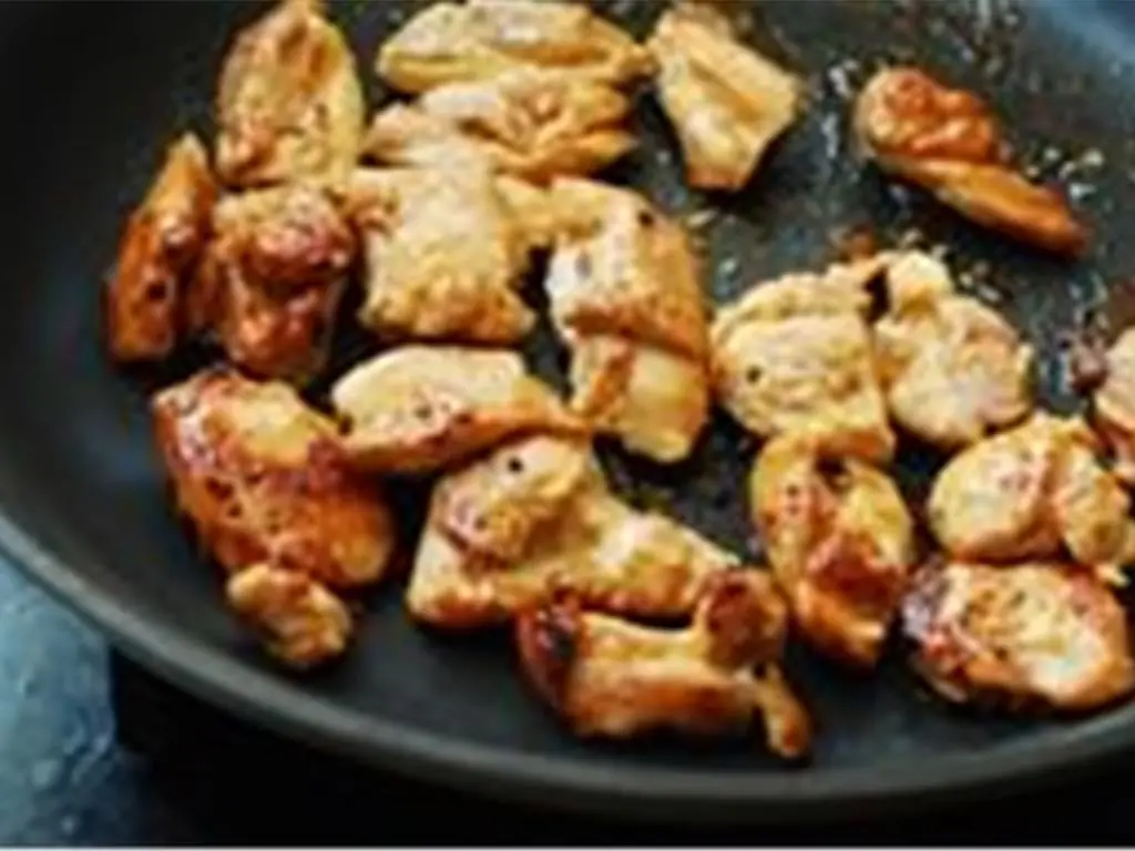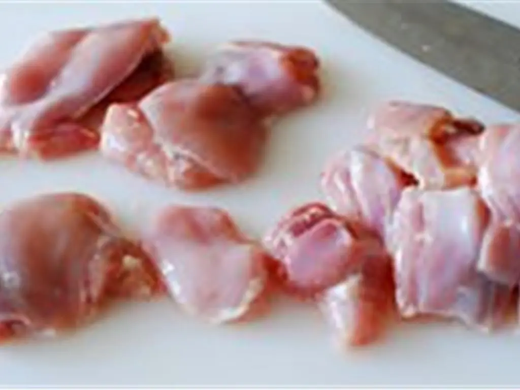 Rinse Boneless, Skinless Chicken Thigh (1 lb). Trim off excess fat. Cut each of the chicken pieces into small sizes (about 2 inches long and 1 inch wide).