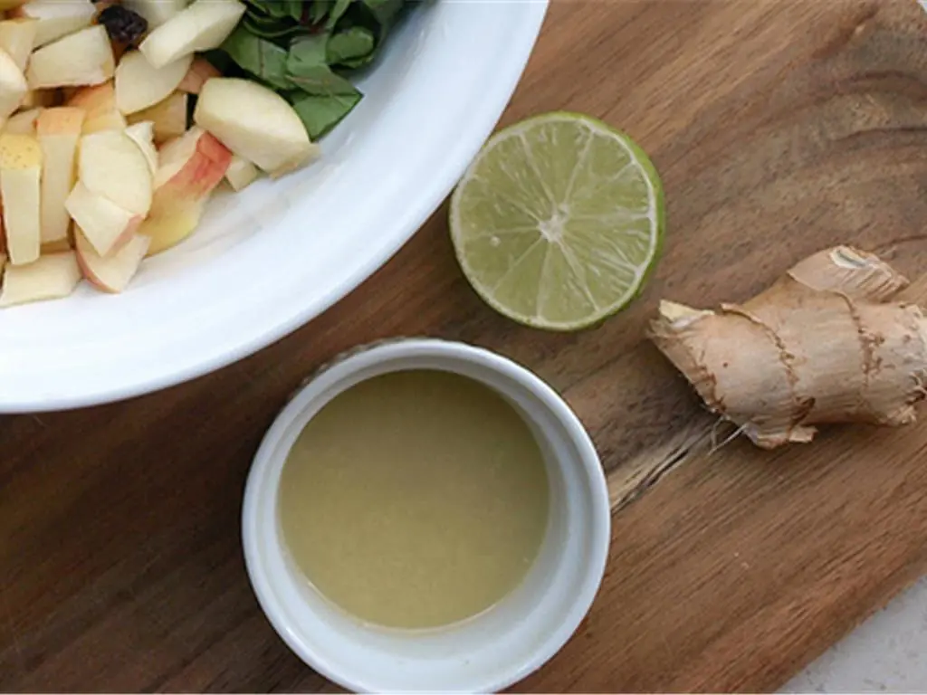 In a small bowl, mix together the lime juice, ginger, Ground Cardamom (1/8 tsp), and Pure Maple Syrup (1 tsp). Set the ginger lime dressing aside to let the flavors mellow and come together.