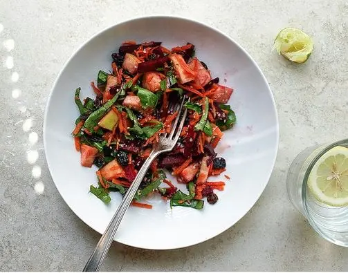 It has a bit of sweetness from the raisins, carrots and apple, a little earthiness from the beets, a slight sour from the lime juice, and some zest from the ginger and cardamom. Add to that how colorful it is, healthy, nutritious, easy to make and so fresh…it’s a detox keeper!