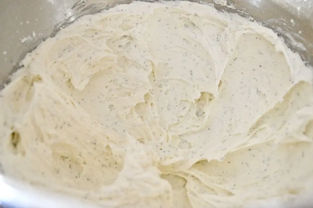 While the cookies bake and cool, make the buttercream. Wash out the stand mixer bowl and get it set back up with the paddle attachment. Beat the Butter (2 sticks) in it until it is fluffy, then cut the Earl Grey Tea (1 bag) open and dump in the leaves.