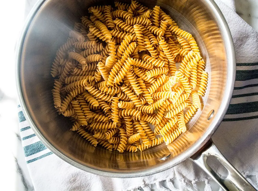Cook Chickpea Pasta (8 oz) according to package directions.
