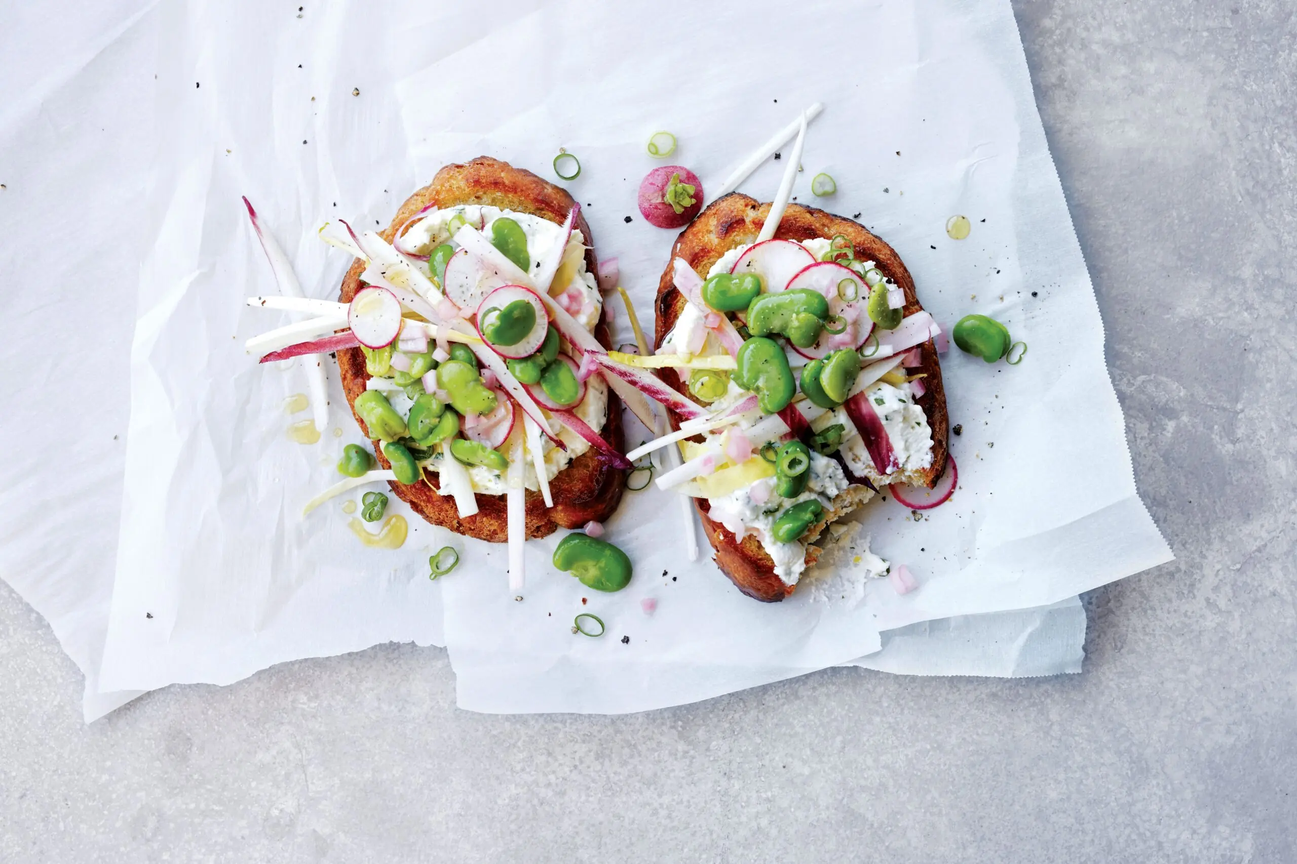 Endive and Fava Salad Tartines with Herbed Ricotta