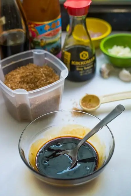 Prepare the sauce by combining Oyster Sauce (1 Tbsp), Light Soy Sauce (2 tsp), Dark Soy Sauce (1 tsp), Palm Sugar (2 tsp) and Fish Sauce (1 tsp). Set aside.