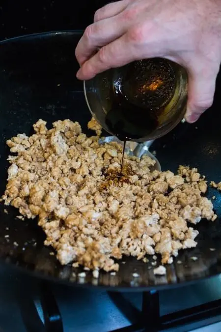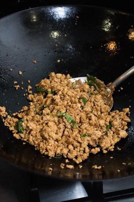 Add the Ground Chicken (1 lb) to the wok and stir-fry until fully cooked, about 4-5 minutes.