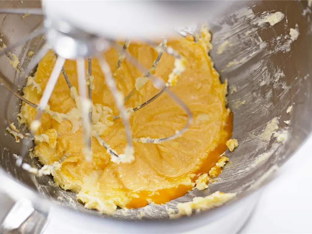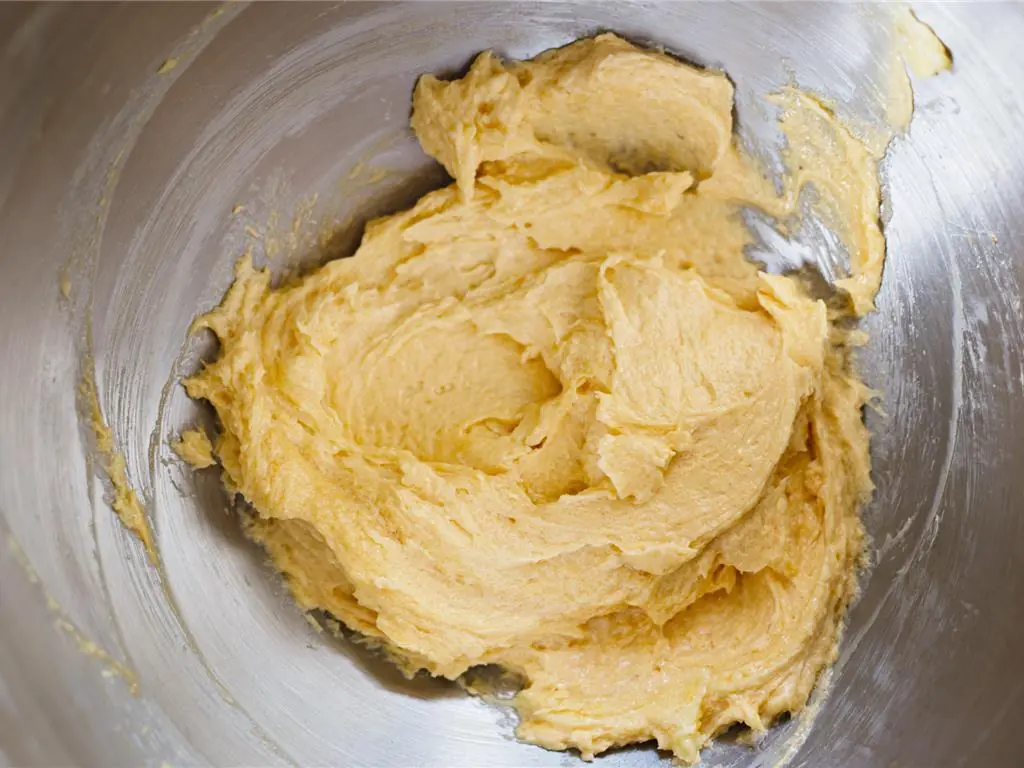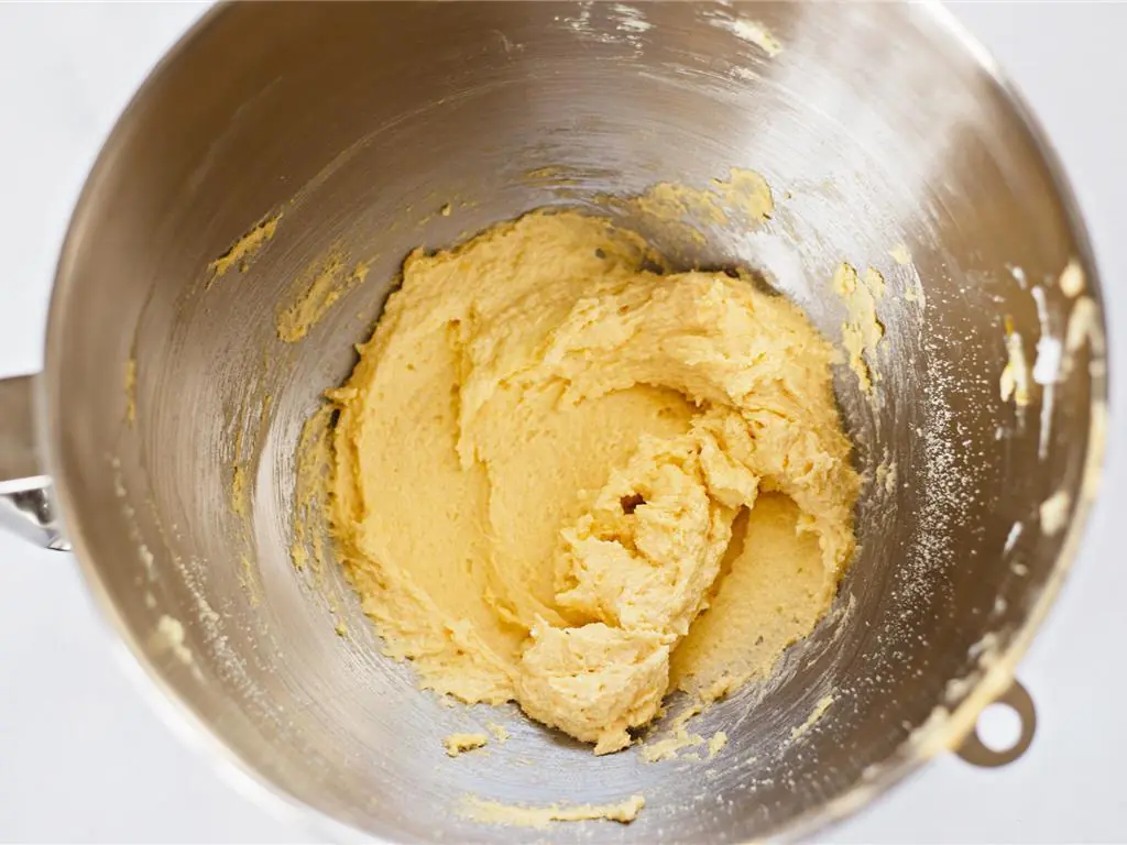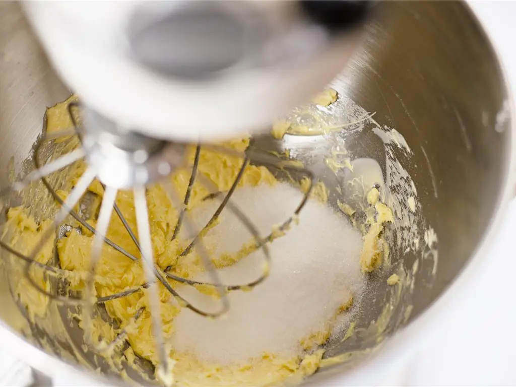 Place Unsalted Butter (1/2 cup) and Granulated Sugar (1/2 cup) in the now-empty bowl of the stand mixer, and cream together on medium speed for about four minutes.
