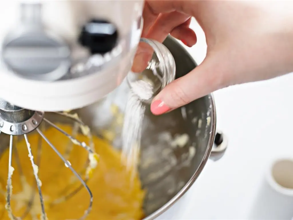 Sift in a third of Cake Flour (1/3 cup). Stir gently to combine.