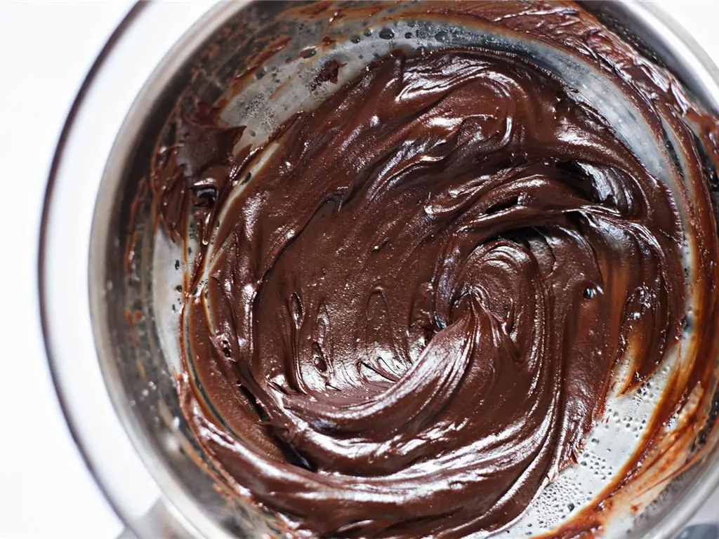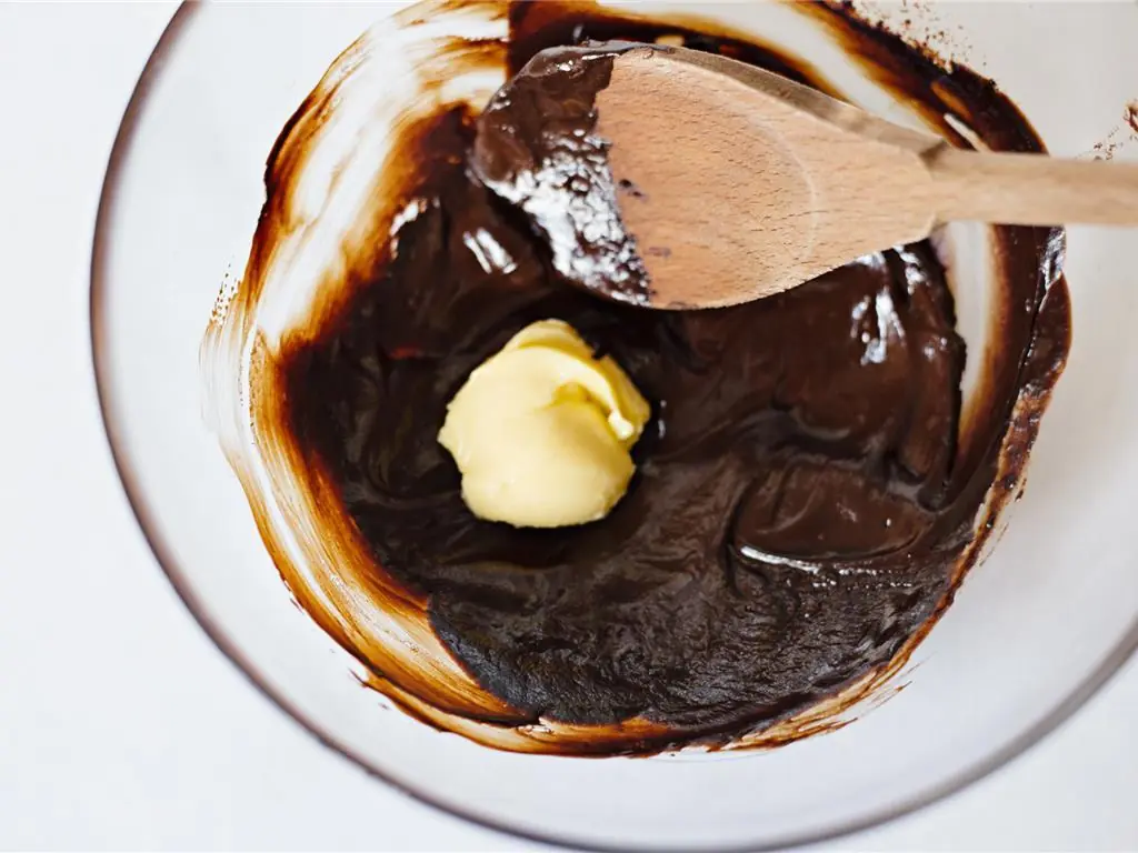 Take chocolate off heat. Add Unsalted Butter (1/3 cup) a tablespoon at a time, and stir to combine.