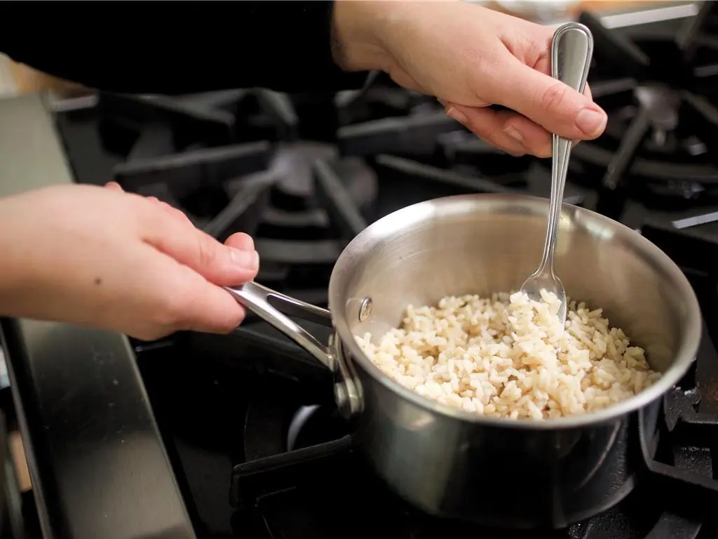 In a small sauce pot, add the Brown Rice (2/3 cup) with 1 1/2 cups of water. Bring to a boil and lower the heat down to a simmer, cover and cook for 35 to 40 minutes until rice is tender.