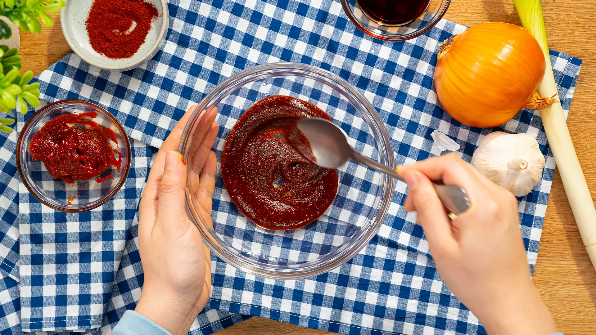 In a small bowl, combine Gochujang (2 Tbsp), Soy Sauce (1 1/2 Tbsp), and Paprika (1 tsp) together.