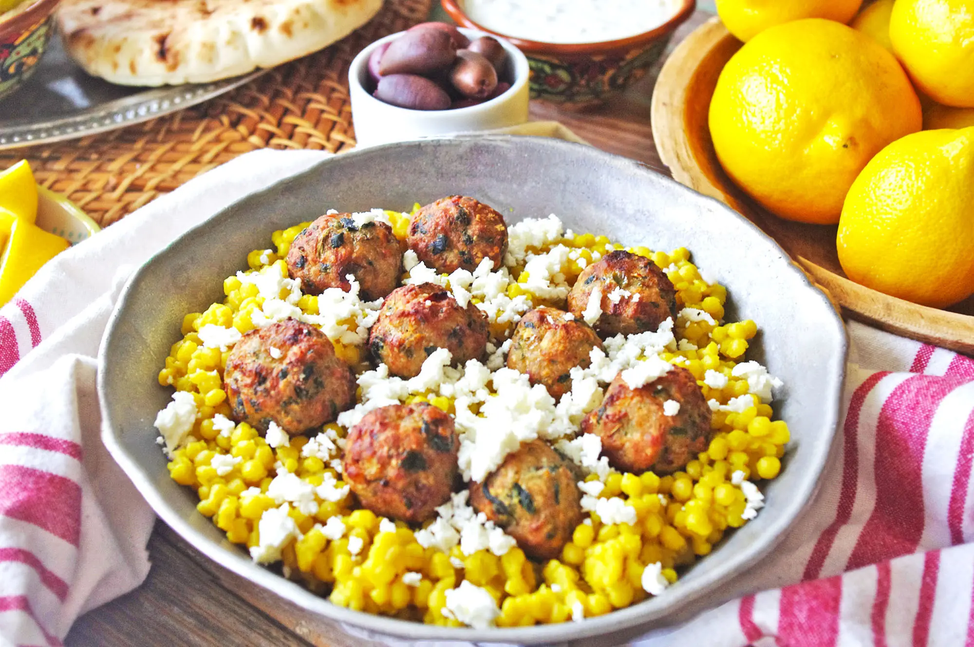 Greek Turkey Meatballs with Tzatziki and Couscous