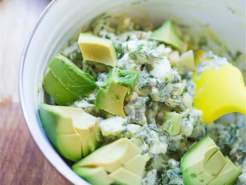 Add eggs to the mayonnaise mixture and gently fold in. Add the diced Avocado (1) gently fold in. Season with Kosher Salt (to taste) and Freshly Ground Black Pepper (to taste).