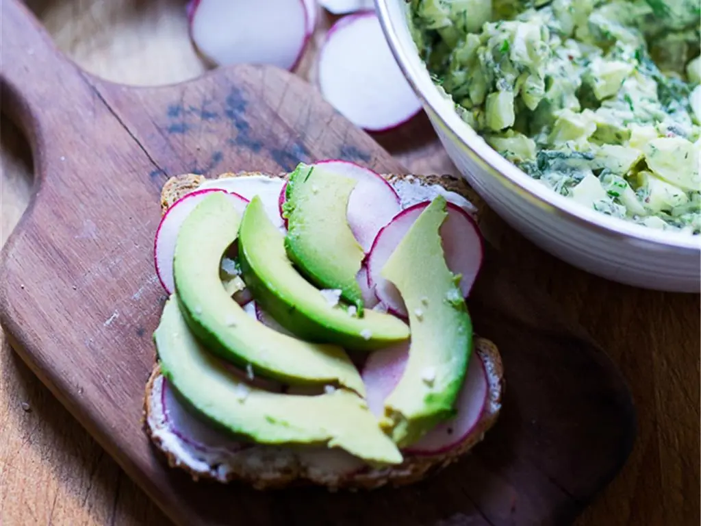 For sandwiches, spread bread with mayo and mustard if you like. Layer sliced Tomatoes (to taste), avocado or sliced Radishes (to taste) or all.