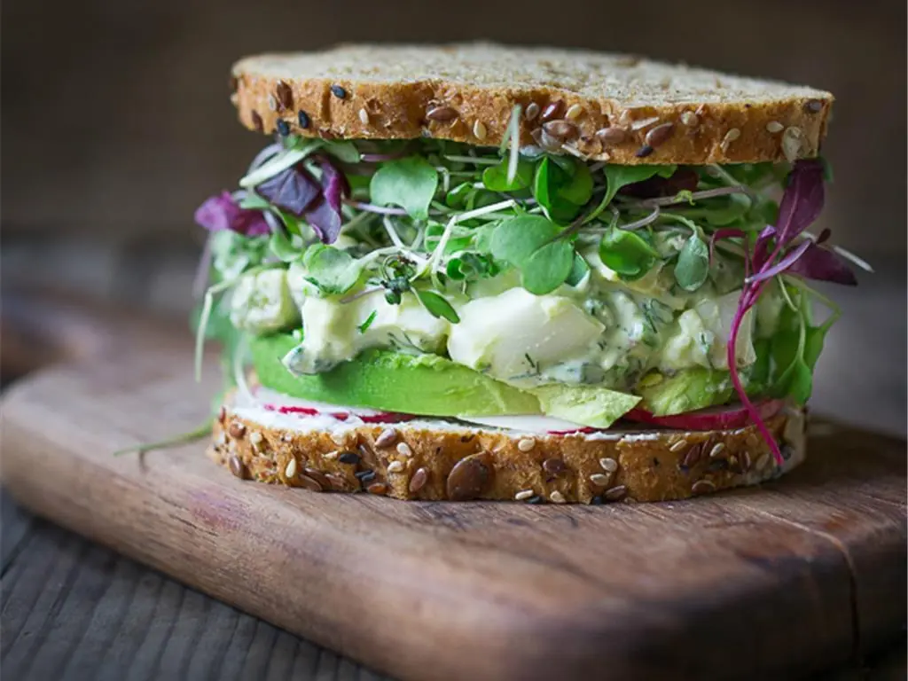 Top with a generous amount of egg salad, and a mound of micro greens. Either serve openfaced or top with second slice of Bread (8 slices). Cut in half diagonally. Enjoy!!