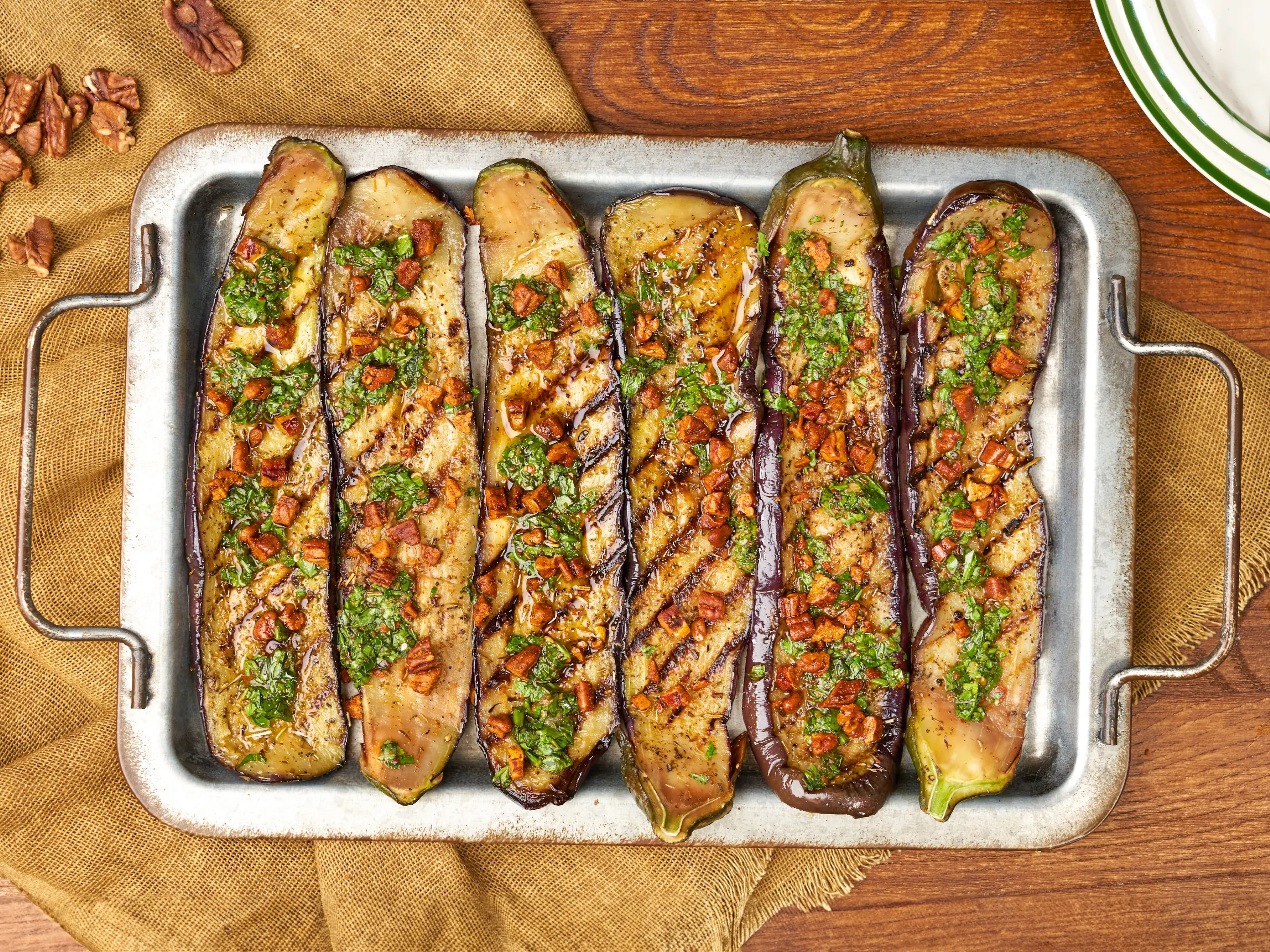 This Grilled Eggplant with Chimichurri recipe is a quick, flavorful culinary delight. A swift, flavorful masterpiece that marries the smoky essence of charred eggplant with the zing of chimichurri sauce and a satisfying crunch of nut crumble. An ideal addition to your holiday feast, this dish serves as a side or entree. Elevate your dinner experience with this easy yet delicious creation.