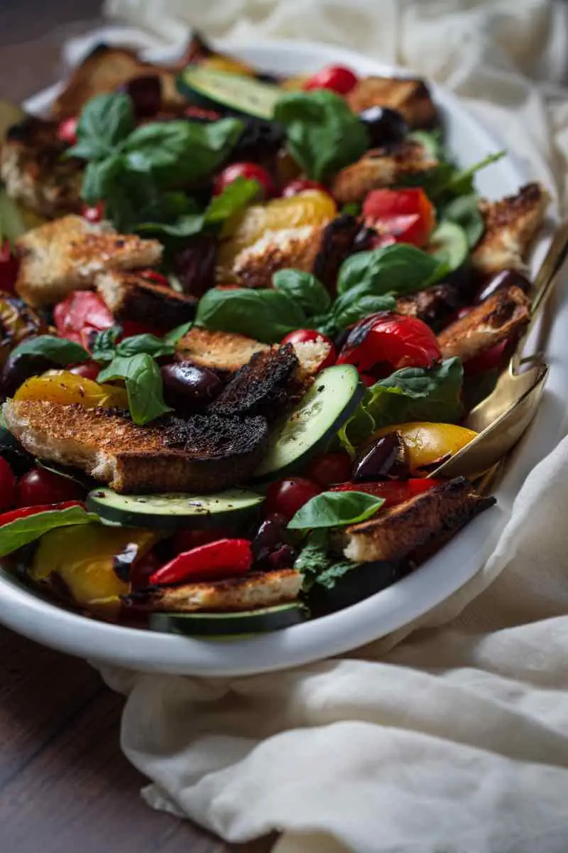 Fresh and vibrant, this grilled Panzanella salad is the perfect lunch, dinner, or side dish. Drizzled with a low FODMAP dressing that whips up in a snap, it will quickly become a mainstay in your low FODMAP salad rotation!